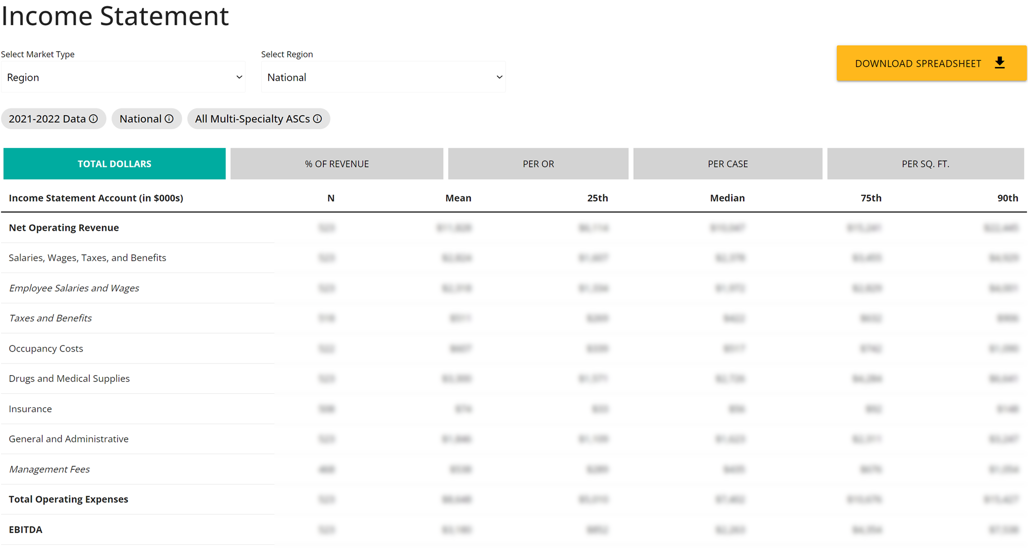 The Intellimarker© ASC study is based on detailed information provided by over 580+ centers around the country, representing an aggregate surgical case volume of over 3.4 million cases. The information provided has been divided into sections which cover all significant areas of financial and operational performance. These benchmarking sections include: